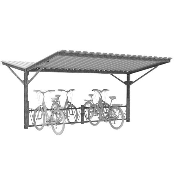 Alt stål er naturligvis varmgalvaniseret for mange års holdbarhed. Der er intet træ der rører ved jorden så cykelskuret er godt beskyttet mod råd og derfor på den lange bane en mere økonomisk løsning end et træskur. Alle vores overdækninger er naturligvis styrkeberegnet, så vi ved det holder til de danske forhold. Desuden har vi mulighed for at levere overdækningen med påstøbte betonfødder for hurtig montage, eller med løse betonfødder som skal graves ned og overdækningen eller skuret passer lige oven på.